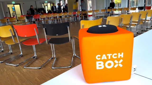 Zum ersten Mal erlebt habe ich die Catch Box bei der Design Thinking Conference Ende Oktober in Amsterdam. 150 Menschen konstruktiv einbinden? Kein Problem. In wenigen Minuten wuchsen dort Bühne und Publikum zusammen. Was wäre nochmal die Alternative gewesen? Ach, bloß nicht dieses Konferenzding, wo zwei Helferlein mit dem Mikro durch die Reihen gehen.